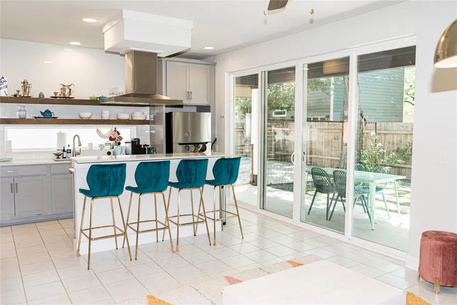 This unique 2-bedroom urban farmhouse, built in 2018 by David Weekley Custom Homes, offers 1,050 sq ft of modern living. Highlights include a master bedroom loft accessed by a ladder, two full baths with walk-in showers, and an island kitchen featuring quartz countertops, stainless steel KitchenAid and Whirlpool appliances, and exposed wood shelving. Enjoy 9-foot and cathedral ceilings, custom built-ins, can lighting, and an in-unit electric washer/dryer. A private covered patio and fenced yard provide outdoor space. The master suite boasts dual vanities and a balcony. Located within walking distance to Kemuri Tatsuya, La BBQ, Launderette, Blue Owl Brewery, and Lady Bird Lake, this home combines stylish living with exceptional urban convenience.