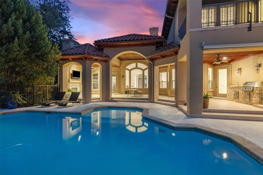 Welcome to 101 Lakeway Hills Cove, a stunning expression of luxury living nestled in the esteemed gated Estates of Lakeway Hills. This custom-built residence is perfectly situated on a generous .597-acre lot, offering an exclusive retreat. Inside, the house boasts a seamless two-story living experience with a grand primary bedroom suite, a convenient mother-in-law suite complete with a full bathroom, and an impressive home theater for cinematic indulgences. An executive office space provides the ideal setting for productivity and inspiration. The home's thoughtful design includes two additional bedrooms upstairs, each with an ensuite bath, connected by a cozy living area, providing privacy and comfort for family and guests alike. Entertainers will delight in the fabulous outdoor living spaces, where a large covered terrace invites relaxation with a cozy fireplace, television, and a view of the sparkling pool and spa. The expansive, private backyard is a canvas for outdoor leisure and grand gatherings. Culinary enthusiasts will appreciate the gourmet kitchen, equipped with commercial-grade appliances and abundant storage, crafted to please any chef. Embrace the epitome of luxury living in Lakeway, Texas, where every detail caters to an exquisite lifestyle. 101 Lakeway Hills Cove awaits the buyer who seeks elegance, privacy, and a home that truly feels like an escape from the ordinary.