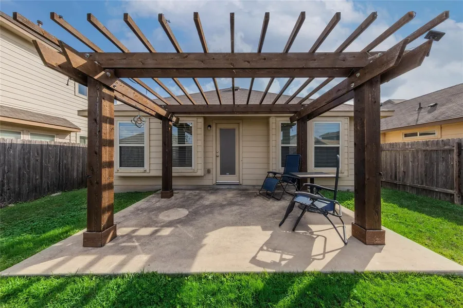 This delightful Southeast Austin home comes with SOLAR PANELS and will offer generous savings on the monthly utility bills. This three-bedroom, two-bathroom home is completely move-in-ready and comes with all appliances. It's located minutes from the Tesla Gigafactory, downtown Austin, Austin-Bergstrom International Airport, Velocity ATX, and has easy access to FM 969, 45 Toll Road, and 130 Toll Road. The nearby community amenity center offers a pool, playground, and sports court. The home also features a sleek modern kitchen complete with an oversized center island and breakfast bar. Gorgeous wood-look tile floors flow seamlessly throughout the open-concept single-level floor plan. The primary bedroom features soaring vaulted ceilings, a bathroom complete with a tub/shower combo, and a huge walk-in closet. This home also has a large private backyard with a delightful patio and pergola for outdoor activities, social gatherings, and summer grill-outs. Dogs and cats of all sizes are welcome!