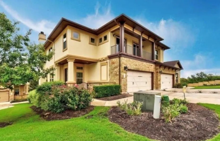 Immaculate townhome with 2,535 square feet of luxurious living space with new paint and carpet! Upgrades include high- end surround systems, crown molding, hardwood flooring, window tinting, custom garage storage, and more. Two residences in the building structure in a community that usually has three add to the exclusive character. Fireplace is nonfunctional. Your view includes established trees, a park, and the hill country. Lake Travis ISD, walk to community pool, fitness, and yard maintenance included.