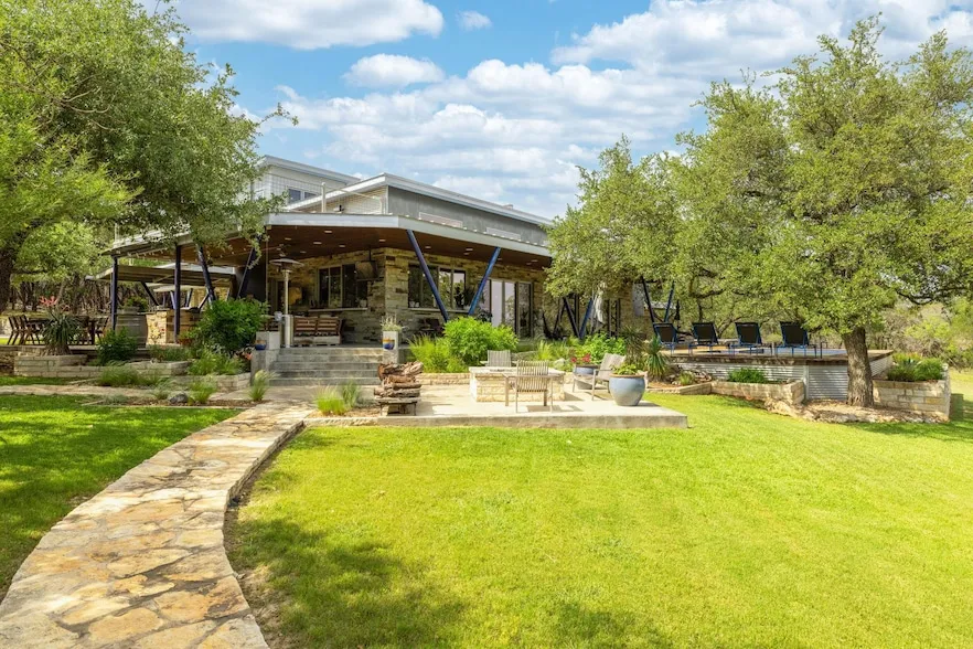 Nestled within the prestigious gated enclave of Chimney Oaks at Lake Travis, 4418 Brasada Lane in Marble Falls, Texas, offers an unparalleled blend of luxury, privacy, and natural beauty. This expansive 31.71-acre (Wildlife Exempt) gentleman's ranch is a sanctuary of tranquility, perfect for equestrian enthusiasts or those seeking a secluded retreat. The multiple building estate features a meticulously crafted main residence encompassing approximately 3,831 square feet of sophisticated living space. Upon entering, one is greeted by an atmosphere of refined rustic charm and expansive windows that frame panoramic views of the surrounding Hill Country landscape. A grand fireplace serves as the focal point, offering warmth and ambiance during cooler evenings. Outdoor living is equally impressive, with expansive covered patios and a well-appointed outdoor kitchen, perfect for alfresco dining ...