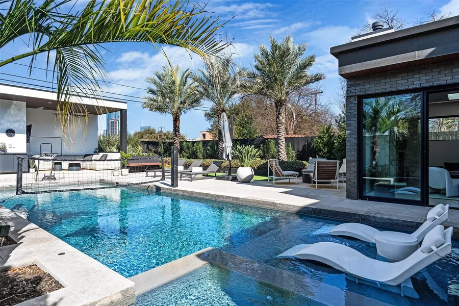 This rare modern residence in Austin's coveted Holly District is an architectural gem, designed & furnished by SLIC Design & featured in 1stDibs Introspective Magazine. It blends luxury, smart technology, & sophisticated design. Every detail, from structure to landscaping, has been meticulously crafted for an elevated living experience. The backyard is an urban oasis with a large pool, built-in spa, beach area, & smart controls for heating/chilling. Multiple seating areas, a pool casita with a half bath, full kitchen, TV setup, outdoor shower, sound system, & fireplace. Enjoy skyline & park views with privacy, created by a custom boundary wall. Over $250,000 was spent on landscaping alone. Smart Home & Security - Josh AI integration for voice-controlled music, lighting, & fans. Full security system with cameras & Door Bird video entry with remote access. Fast 2GB internet. Whole-home water filter, auto-start backup generator, dual tankless water heaters, & two variable-speed HVAC units. White oak floors, level 5 drywall, & walnut cabinetry. Motorized blinds, Sonos speakers, gas fireplace, & 77" TV cutout. Natural light pours through large sliding doors & skylights. State-of-the-Art Kitchen: Quartzite countertops, walnut cabinetry & Sub-Zero/Wolf appliances. Sliding doors connect indoor & outdoor kitchens. Luxurious Primary Suite: Downtown views, custom headboard, Sonos surround sound, motorized blackout shades, & with waterfall shower. Walk-in closet with walnut cabinetry & full-size washer/dryer. Garage & More: Finished two-car garage with epoxy floors, built-in storage, two electric car chargers, & mini-split for heating/cooling, ideal for gym or workshop. The home features bespoke pieces from SLIC Design, with $225k invested in art & furnishings (available for negotiation). Built to the highest standards, this home offers an unparalleled blend of design, technology, & luxury. Don't miss the chance to own this one-of-a-kind property.