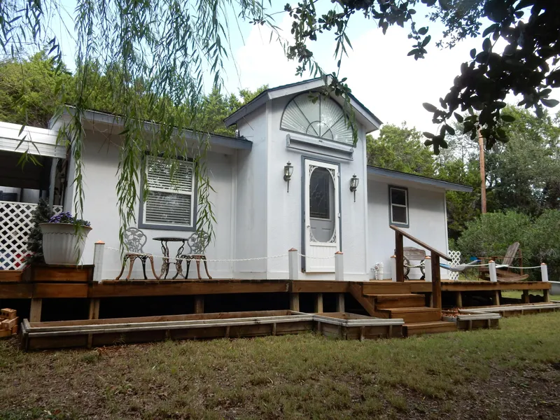 The main home is a 3-bedroom, 2 bath manufactured home, approx. 1664 sq. feet. It has wood siding, a new roof in 2014, and has lots of improvements with many unique features, including an open floor plan. The main home has decks on both the front and back of house, and a third deck on the side of garage, for family get togethers. It also includes an enclosed conservatory (porch) to sit outside and enjoy the Texas evenings. A real MUST SEE! The second smaller home, is approximately 650+sq.ft. pier-beam home, with 1 bedroom, 1 bath, and a full kitchen, approx. 650+ sq. ft., also with a new roof in 2014. Perfect for families with aging parents to have them close, or for adult children in college or still at home, but need to be independent, while starting out their new lives. It can also be used as a rental home, and potentially pay your monthly mortgage! In addition, the property has a 14 x 34 ft. cabin that is a blank slate, just waiting for your imagination! It can be easily converted into a weekend rental during Austins big music events, Rot Rally, Formula One, etc. It can also be used as a long-term rental for a single person, or extra space for visiting family members during summers and holidays! The possibilities are endless, including an amazing mancave!