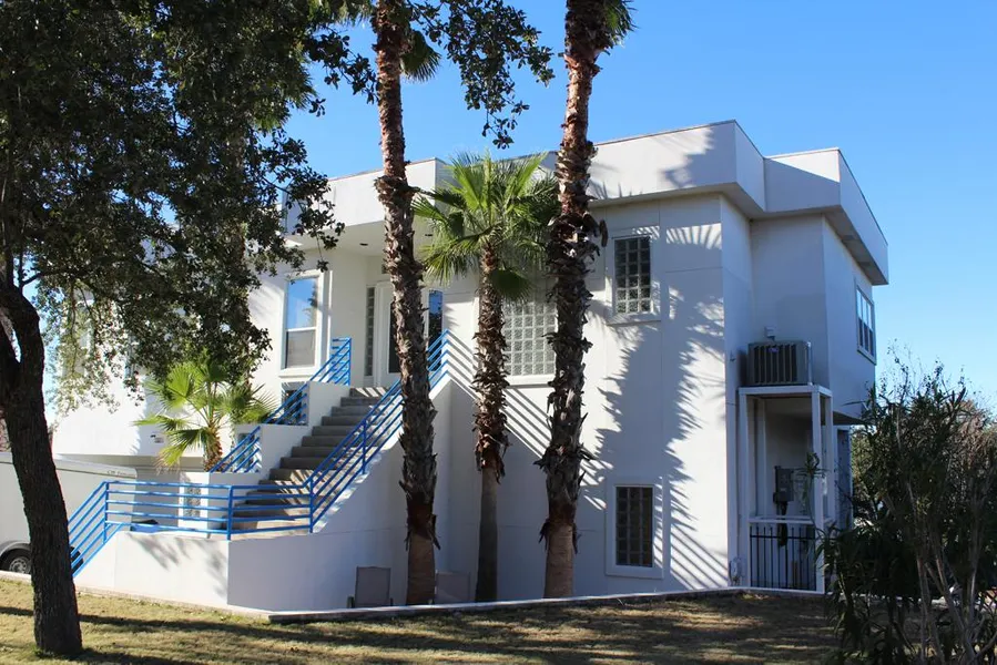 Lake Travis Waterfront stylish stucco home on the beach. Has concrete boat launch ramp in back yard and one slip floating boat dock. Your guests can bring their boats. Covered rear gazebo plus patio balcony with nice Lake and Hill views. Granite counter tops throughout kitchen, bath, and wet bar. Handsome wood laminate and tile floors. New carpet in secondary bedrooms. Large garage and workshop with half bath on ground floor. Local exemplary Lago Vista schools, golf courses, shopping, and medical.