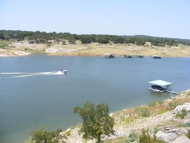 Lake Travis Waterfront Lot on Deep Water. Along main old river channel under lake, with 174ft. of shoreline. 2.10-Acres; Lot-15, Block-C, Chimney Oaks at Lake Travis, Section-1. Excellent boat dock site. Homesite cleared with fabulous Lake Travis view. Driveway cleared. Wonderful large oak trees. Gated entry subdivision. Excellent private paved roads. Level lot easy to build on. Area of large estate lots & nice homes. Existing water line/ lake water pump/currently used for irrigation.