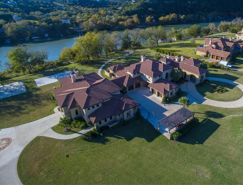 Lake Austin Estate on 5.8 acres w/ 400' water frontage. This unique, immaculate compound was designed to be a fun and inviting place that would keep the kids/friends hanging out here. The main house, 5 bedrooms, wine cellar, 2 offices, Second house for entertaining incl indoor basketball gym, game room, w/bar & multiple TV's, pool tables, Foosball, arcade games, 15 seat movie theater etc. Boathouse, huge yard w/ sand volleyball, sport court, BBQ & more. Furnishings nego.