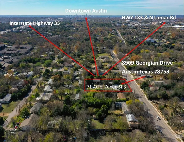 SF3 Duplex Development Opportunity. A level .71-acre parcel currently zoned SF3 in Georgian Acres. Owner selling the potential to subdivide into 4 X 7,000 sqft duplex lots, 8 units. Located in a rapidly developing area of North Austin. The City of Austin has plans for a new park in the neighborhood. Great location, close to the new Austin Roots Soccer stadium - The Domain & The Chinatown Center. Easy access to major roads. New City zoning proposal will allow for higher density & possibly 6 duplex lots.Restrictions: Yes