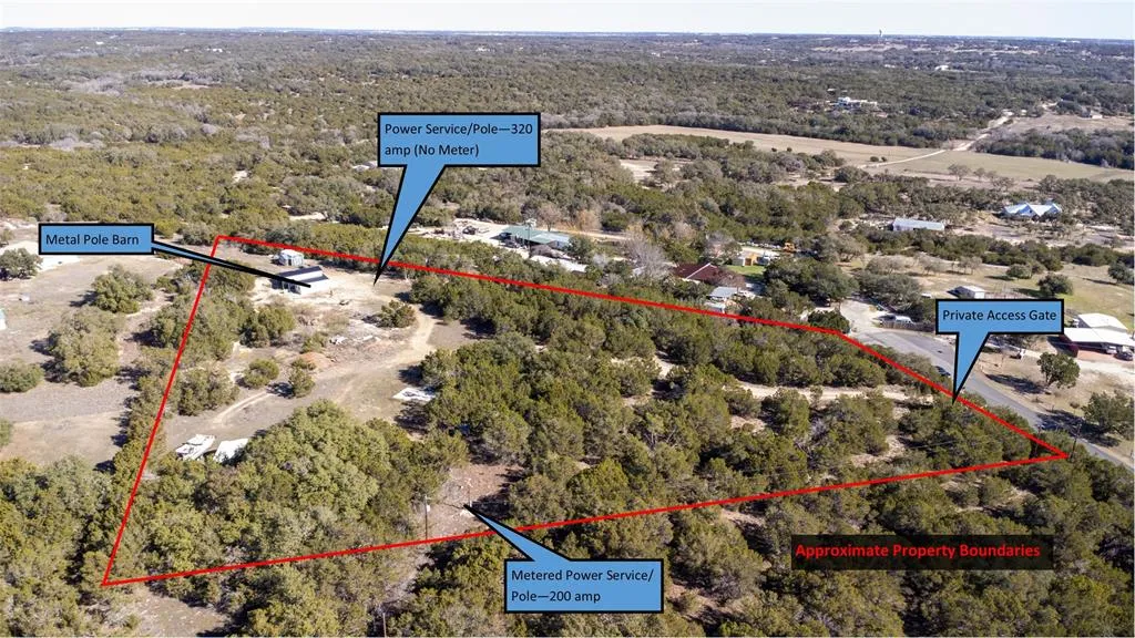 5+ ACRE HILL COUNTRY HOMESITE CLOSE TO TOWN! Beautiful land with improvements in the ETJ of Leander close to Austin ~ Minimal Deed Restrictions ~ 2 Power Poles/Connections Set (320 Amp - No Meter & 200 Amp - Currently Metered) ~ Fenced on 2 Sides ~ Beautiful Metal Pole Barn ~ Storage Shed ~ Gated Access ~ Recent Mail Box ~ Possible Hill Country View From Future 2nd Story Building ~ On-Site Sanitary Study Completed ($3-4k Value)