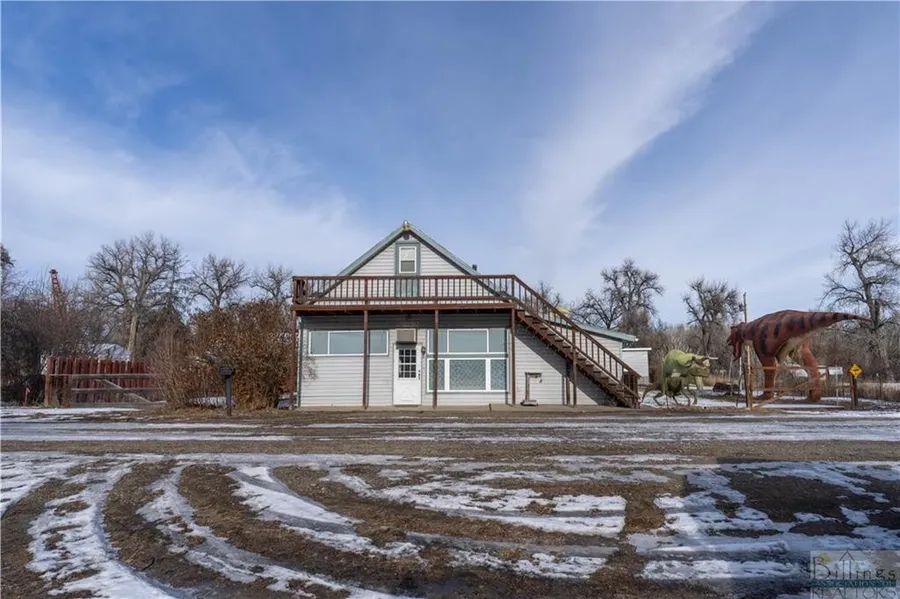 If you’re wanting something unique and the ability to make it your own, this is a must see. Located about under 10 miles west from Hysham, this home has a lot of space – a sizable living room, spacious dining room, bonus family room upstairs, and the bones of your own home bar/rec hall area. What originally started as a general store and post office can now be a place you call yours. Bonus! Dinosaurs and other statues are here to stay. Sold AS IS
