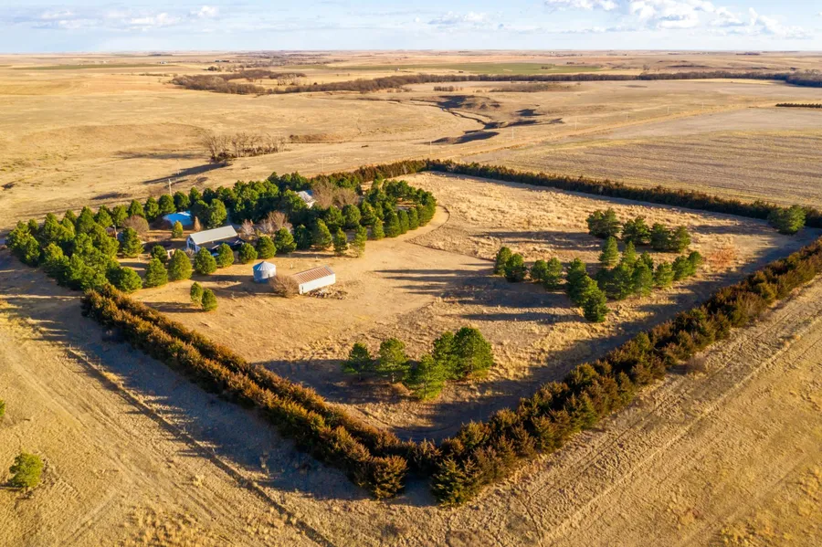 This beautiful farmstead located just south of WaKeeney, Kansas is loaded with value. The first thing you’ll notice when you pull up is an amazing 11 acre shelter belt that provides privacy and great protection from those Kansas winds. When you pull inside of the windbreak you’ll see a charming 1,048 square foot, 2 bedrooms, 1.5 bath farmhouse with a couple non-conforming bedrooms in the basement. The farmhouse features a newer deck off of the back that includes a hot tub and sauna. Next to the house you’ll find an oversized two-car garage and shop with electricity. The farmstead also includes a rustic party barn and bunkhouse that would be perfect for entertaining guests. Next to the party barn, you’ll see a historical rock house that was built in the 1800s and is still functional for guests. All of the living structures have newly remodeled bathrooms. Make sure you bring your boat, ATV...