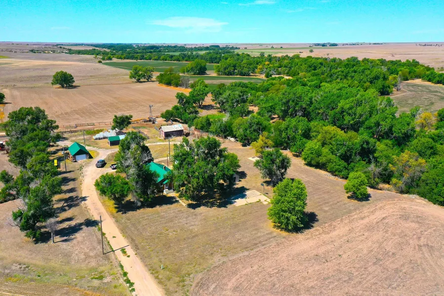 Great gravel road frontage just off 170th Avenue. This half section of excellent tillable, grass and hunting land will be found. The home is approximately 2200sq ft, 4BR and 2 Bath with a finished main level and partially finished basement. The exterior of the home has brand new windows, a metal roof and custom metal log cabin siding. The remainder of the farm is finished with an oversized single-car detached garage or workshop and several other small outbuildings that could be used for chickens, ducks, and turkeys. This property is also set up with corrals for livestock. The owner has plenty of options for what they want to do on this nice quiet rural river bottom home.The opportunity to own this rural home is sweetened tremendously as we talk about the additional 320+/- acres of farmland and river bottom that comes with it. The owner would be able to farm this land for their own or cash rent opportunities are definitely available. Honestly, even though a big portion of the main river lies directly to the North, with the right crops planted to the South on this property, there is a very good probability that you will have an opportunity of any deer from all four sides of this property. I would be more than glad to give you my honest input on how to set this property up to make it even more of a buck factory than it already is. This is one of those properties you certainly can’t judge by its cover. The tillable is mainly class 2 & 3. The grassland is fully fenced in with almost 1 mile of brand new fence that was built right. Mineral rights are believed to be fully intact and will transfer to the buyer upon closing.Contact me today to set up a private showing of this great western Kansas property.Doug Wagoner.