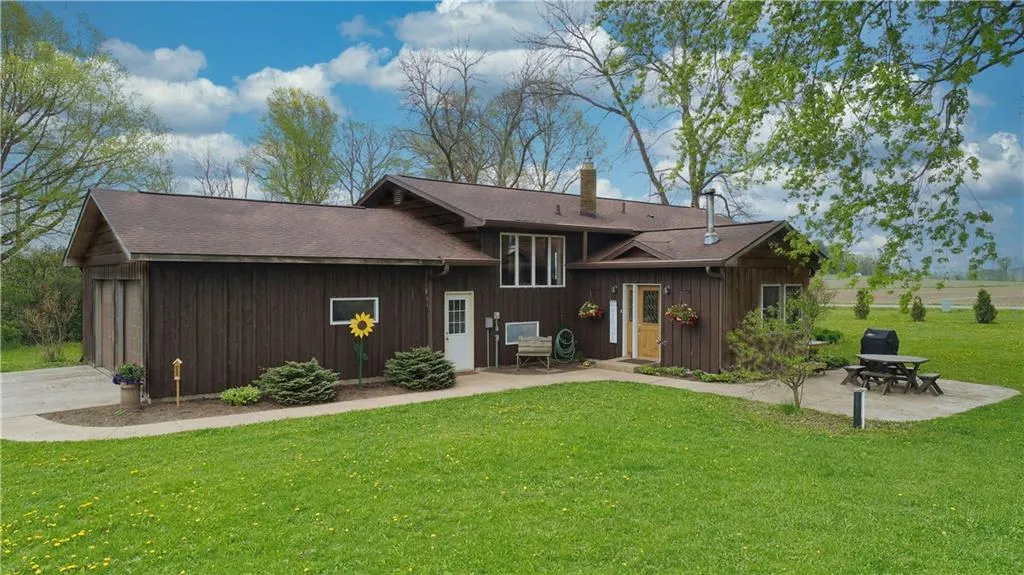 Beautiful, peaceful 5.6 acre property with great views. Spacious and bright Bi-level with living and family rooms on upper level, large bedrooms/closets. Enjoy the 4-season room or relax on the patio. Newer: fireplace, hybrid water heater, electrical panel. Garage access from basement. Property complete with fire pit and large gardens including apple trees, raspberries and asparagus patch. 18 x 48 storage shed w/ 220 Amp and concrete floor, 48 x 98 machine shed. Seller to complete EXT painting.