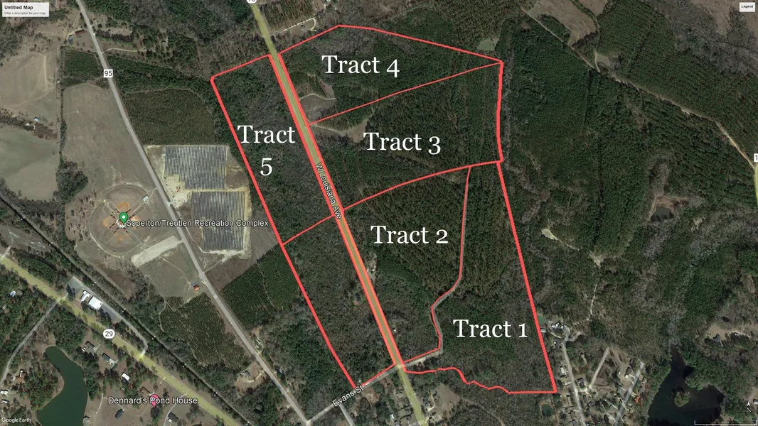 Great home site or developmental property located in city limits of Soperton. Acreage is approximate and is subject to a new controlling survey completed by buyer. Tract lines are approximate and will need to be established by survey. Tract is a portion of Map/Parcel S008 001 and is illustrated as Tract 1 on proposed subdivision map.
