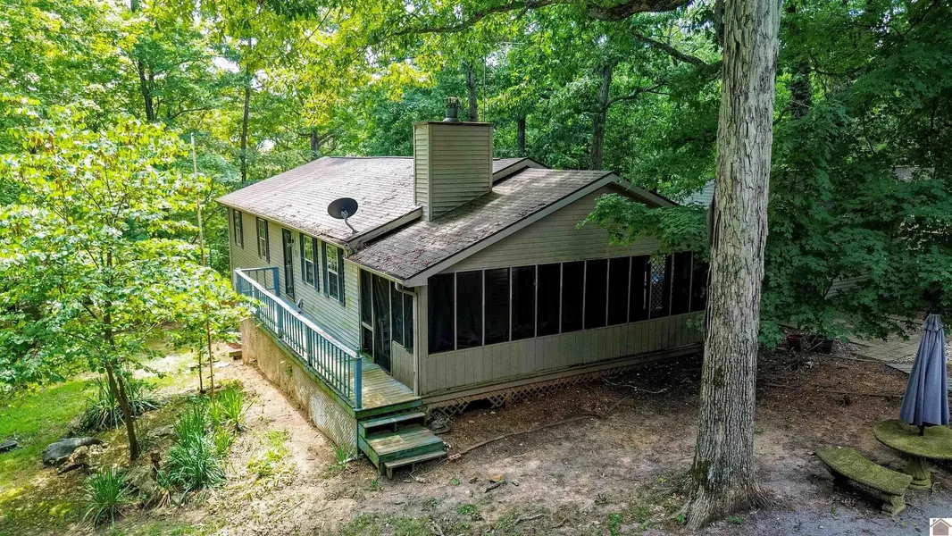 Charming 3BR, 2BA home just minutes from Lake Barkley Marina! Enjoy peaceful living with an open-concept layout, brand new flooring on first floor, spacious kitchen, and a primary suite with private bath. Relax on the screened-in porch or take in nature from the back deck. The walkout basement is unfinished and ready for your vision—perfect for extra living space, workshop, or storage. Located in a quiet setting, this home offers year-round comfort with easy access to boating, fishing, golfing, and recreation. Ideal as a primary home, vacation getaway, or investment property. Garage with workshop attached via breezeway with an added carport as well. Don’t miss it!