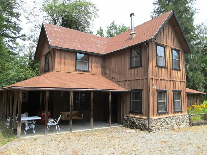 This is the ultimate get-a-way and year-round retreat! Escape to the Trinity River in Hyampom where privacy abounds and so does the wildlife. This 86 acre retreat has 2 main homes-a 2 story 2/1 with spacious rooms and 1/1 custom home over looking the river. There are 3 additional cabins situated throughout the property, his and hers bath houses, outdoor kitchen and dining room to accommodate large gatherings. Afternoon refreshments can be enjoyed in the custom built screened-in gazebo that overlooks the garden and surrounding meadows and property. Plenty of room for the animals with a 20X40 barn and lots of pasture land. Gravity fed spring water supplies the homes and landscaping. Government land on 3 sides gives abundant privacy and the South Fork of the Trinity River runs the whole length of the property. Come to the Anderson ranch and get your fill of fishing, beach time, hiking, ridi...
