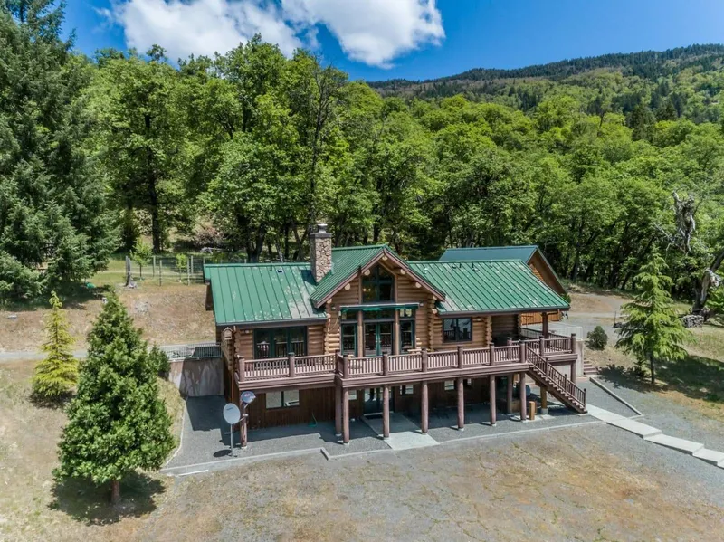 South Fork Mountain Ranch is located at the base of South Fork Mountain at about 3,000 elevation. The Majestic Log Home sits at the base of the 180 acres behind a locked gate. The property is mostly fenced and has amazing oak filled meadows supporting a plethora of wildlife.Consists of 4 parcels - see attached interactive map for topography details. The highway work on 36 is done; access to Mad River has never been better! The access road to the ranch is paved with a convenient location off Hwy 36.The Montana Style Log Home has finishing touches that will impress the most critical eye, with a focus on practicality. The main level is all you need; downstairs is convenient for guests or kids with a family room that has its own fireplace. The fireplace rockwork is outstanding!The guest house provides privacy for guests or ranch help. The drive-through garage has room for two cars and has a ...