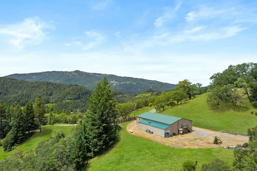 A rare California treasure -- 40 acres of pristine land with breathtaking mountain views, endless sky, and privacy, just under one mile off Hwy 36 via paved road. This newly renovated 3BR/2BA estate blends modern design with rustic elegance: wraparound deck, 2-car garage, sheds, and thriving gardens. The 5,000 sq. ft. two-story metal shop features a 1BR apartment, seven versatile rooms, and 400 amps of industrial-grade power backed by a WhisperWatt 220 kVA generator. A place of raw natural beauty and inspiring scale, just minutes from Ruth Lake, crystal-clear swimming holes, rivers, and endless outdoor recreation.