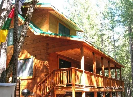 The Trinity River runs along the foot of this four-acre site; bordering the majestic Trinity Alps Wilderness area. The home was constructed by the current owners and completed in 2008. Their emphasis was on materials & construction for strength & beauty w/ year-round comfort and convenience. The flat logs are Pristine Eastern White Pine; featuring a deep color & structural resilience. A cathedral ceiling living room w/ an efficient wood stove & forest views from picture windows. A dining area w/ comfortable seating for 8, & french doors opening to a 8' X 30 ' covered porch. A tiled floor mud room (plumbed for add'l sink) at the entry, opens to a country kitchen w/ pristine wood cabinetry & Staron counters. A full bathroom & bedroom complete the main floor. Primary suite w/ vaulted ceiling on the upper-level w/ plenty of room & pristine forest views. A large walk-in closet w/ built-ins, a...