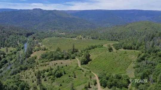 Beautiful & usable 112.69 acres of nearly level farmland with water rights to Maker & Olsen Creeks, & almost a half mile of Hayfork Creek frontage. Five homes ideal for owner & staff, if one decided to bring the 33 acre vineyard back to life. Main home is 3200 s. f. with 2 bedrooms, 1 bath, office, & large open floor plan living room & country kitchen. Attached to the main home is a 3 bed/1 bath apartment w/ balcony overlooking the vineyard. Home at entry is a cute 3 bed/1 bath 1100 s. f. cottage with a wrap around deck overlooking the manicured yard. Third home is a quaint 1000 s. f. 2 bed/1 bath creek side cabin. Fourth home is a 1 bed/1 bath cabin also along Olsen Creek. Lastly, a 1 bed/1 bath home formerly the "bunkhouse". Huge metal 40'x60' workshop that used to house the winery equipment. Outbuildings include a 4-stall barn, 6-stall pole barn, hay storage barn, sheep barn, fuel fil...