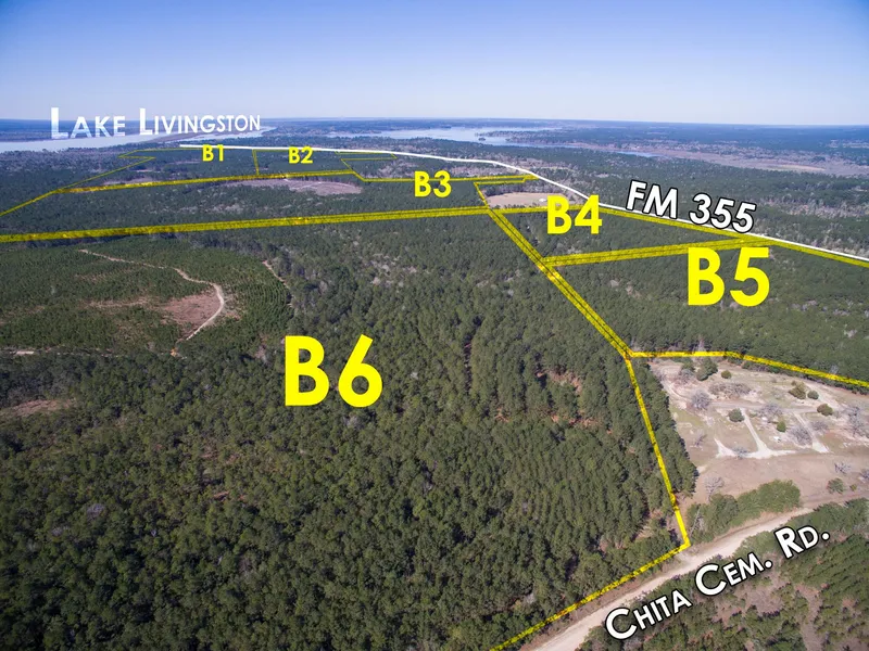 First time open market offering for historically owned industry forestland. Tract has frontage on FM 355. Beautiful rolling topography with pines and hardwoods. Near Lake Livingston and public boat ramp. Division lines are arbitrary, so pick your spot! Great shape for utilization. Lake sites. Great access/frontage allows for many uses. ie; recreation, hunting, high fence, RV park, leisure ranch, development, etc. Tract 2204/2205 B1, B2, B3, B6, B7, C3, C4