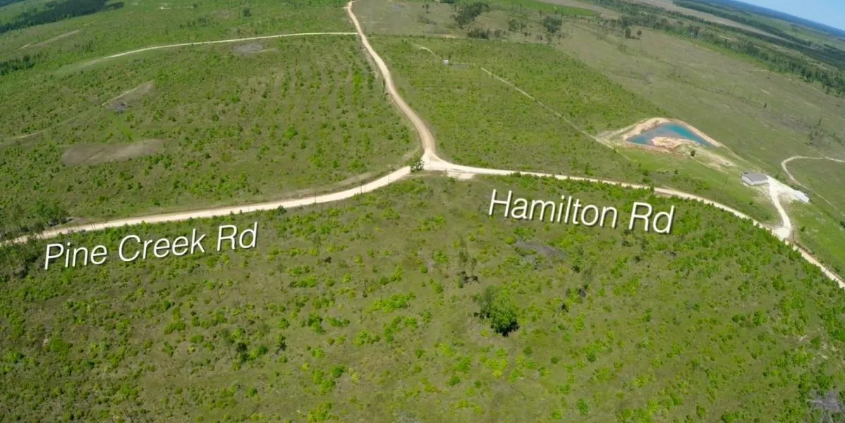 Take your pick ! Turn key recreation ranch of rolling forestland with wildlife food plots, 2 lakes. (~ 17 acre lake under construction). Easily accessible in private/rural community of recreation, forestry, wildlife. The property is bisected by Hamilton Rd (a county maintained public road) 37 acres with improvements on the north side and 283 acres on the south side.