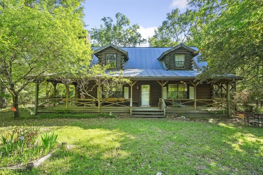 Escape to your own private retreat! This charming 3-bedroom, 2-bath log cabin is nestled in the trees on 12.79 wooded acres. Features a wrap-around porch perfect for relaxing and taking in the serene surroundings. Inside, the home offers a spacious open-concept living area with warm wood accents and a bright sunroom ideal for year-round enjoyment. The kitchen flows seamlessly into the living and dining areas, making it great for entertaining. The private primary suite on the second floor includes its own huge balcony overlooking the peaceful property a perfect place to unwind with your morning coffee or evening sunset. Two additional bedrooms on the first floor offer comfortable space for family or guests. Outside, enjoy a tranquil pond, a huge barn for storage or a workshop, and a covered carport. Whether you're looking for a peaceful full-time residence or a weekend getaway, this one-o...
