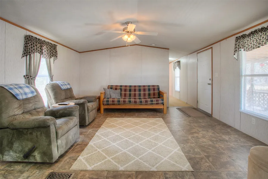 Immaculately maintained 3B/2Ba manufactured home built 2013 with 4 lots in Lakewood on Lake Livingston w/access to the lake & the Trinity River. This home features a large covered front porch, an open & functional layout, w/recent upgrades including a complete HVAC replacement (interior/exterior units) in August 2022 w/a transferable 5-year warranty. Appliances included: refrigerator, stove, microwave, & washer/dryer. Storage & parking options: two detached carports suitable for additional vehicles, RV, or boat parking, plus an approximately 500 sq ft metal building on slab w/electricity, roll-up door & separate entrance—ideal for a workshop or additional storage. Furniture may be included with an acceptable offer. Boat and golf cart available for purchase to buyer. No HOA, and no MUD taxes. Conveniently located in Trinity, this well-kept property is ideal for weekend use or full-time living.