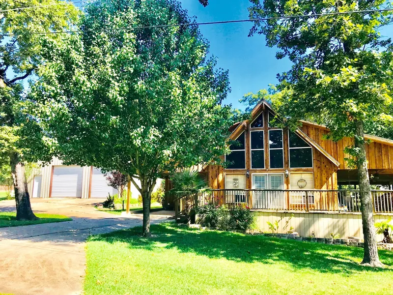 This attractive one and one-half story cedar home is perfect for weekend or fulltime living. This home has been lovingly updated and is in excellent condition. The home sits on 4 lots with beautiful shade trees and pretty landscaping. The pretty, open living area has a wall of windows that bring in the natural light, soaring ceilings, rough pine flooring, and trim that gives you a rustic/mountain feel. The large master bedroom has room for a private sitting area, a nice bath with a title shower, and handy laundry room. The downstairs guest bedroom has a pretty ceiling and is located close to the hall bath. Upstairs you will find a loft with a third bedroom and private deck. This home has zoned central air and heat with a Nest thermostat that you can control from your smartphone super convenient! If you enjoy a party, wait until you see this 1,280 square foot covered porch with a bar are...