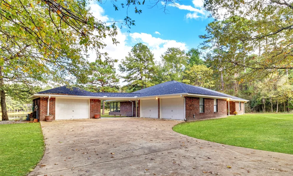 Hidden Jewel of Westwood Shores - Golf and Resort Community! Waterfront Placement on Sand Lake - Single Story 3 Bedrm/2Bath/3 Car Garage on .47 Half Acre w/Park Like Setting! Huge Front Porch welcomes you to this Open Concept Living with Flowing Split Floorplan. Architecturally Designed. Features: Dream Kitchen-Custom Cabinetry, Corian Countertops, Breakfast Bar-Open to Den Area w/Open Lake Views. Corner Masonry Fireplace-ideal for Entertaining. Second Living/Sitting Area-Option would be fabulous Formal Dining Area. Owners EnSuite Bath w/Separate Shower and Corner Garden Tub - French Doors to Enclosed Glassed Sun Porch, enjoy lake view year round. New Roof 2020. New A/C 2024. Reverse Osmosis System. Sprinkler System. HUGE 2 Car Garage PLUS Breezeway to Detached Finished 1 Car Garage-Workshop-Man Cave-Guest Apt. This Hide-away abuts Park Reserve private lake within Westwood Shores-stocked - enjoy fishing, kayaking, paddleboat. Access to Lake Livingston w/Golf, Restaurant, Pools, Tennis.