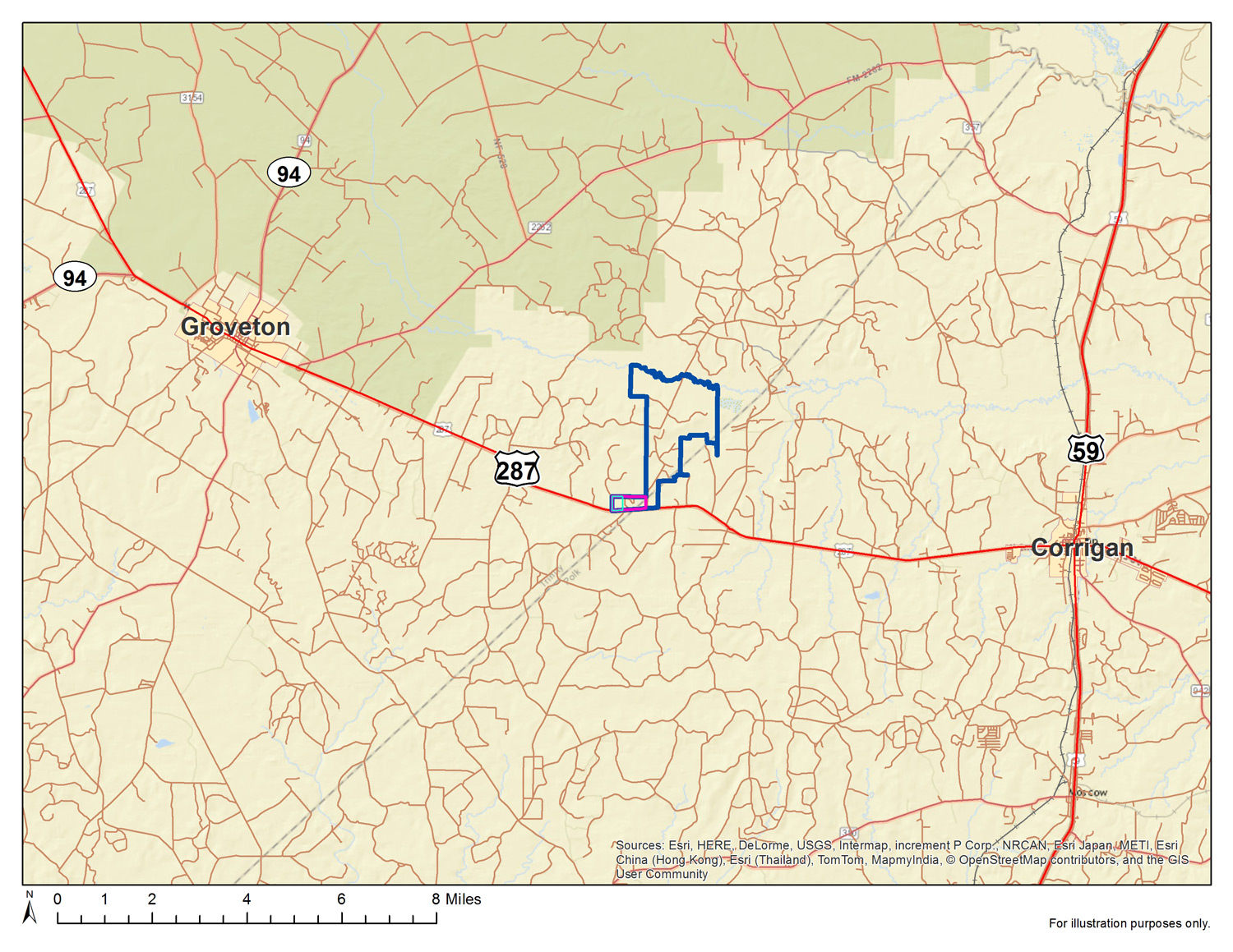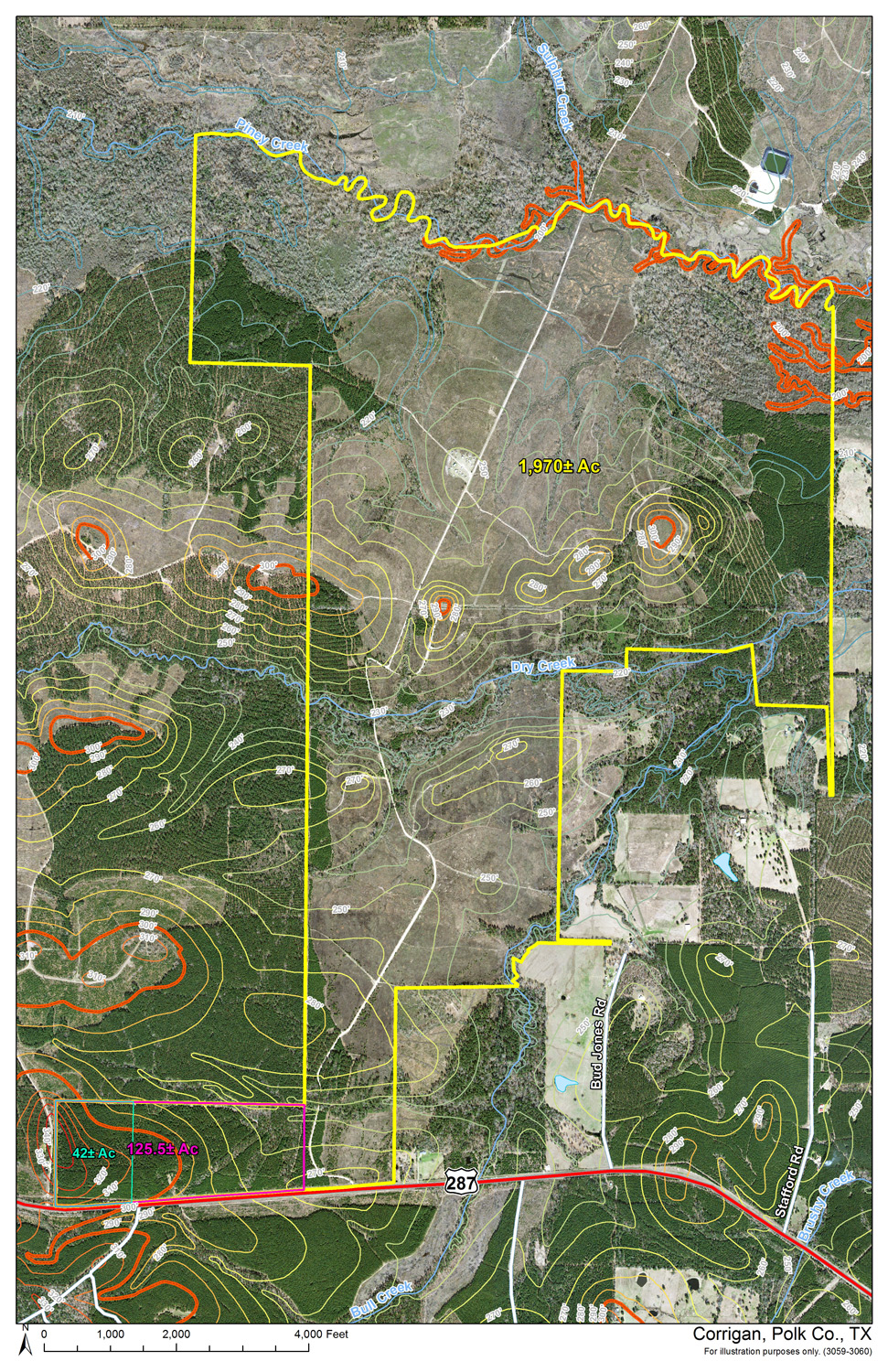 FORESTRY RECREATION. HUGE TOPOGRAPHY WITH HILLTOPS. BIG TRACT BORDERS "PINEY CREEK." WOODED WITH MERCHANTABLE PINE & HARD WOOD. CHOOSE YOUR SIZE ON SMALLER TRACT FRONTING US 287.