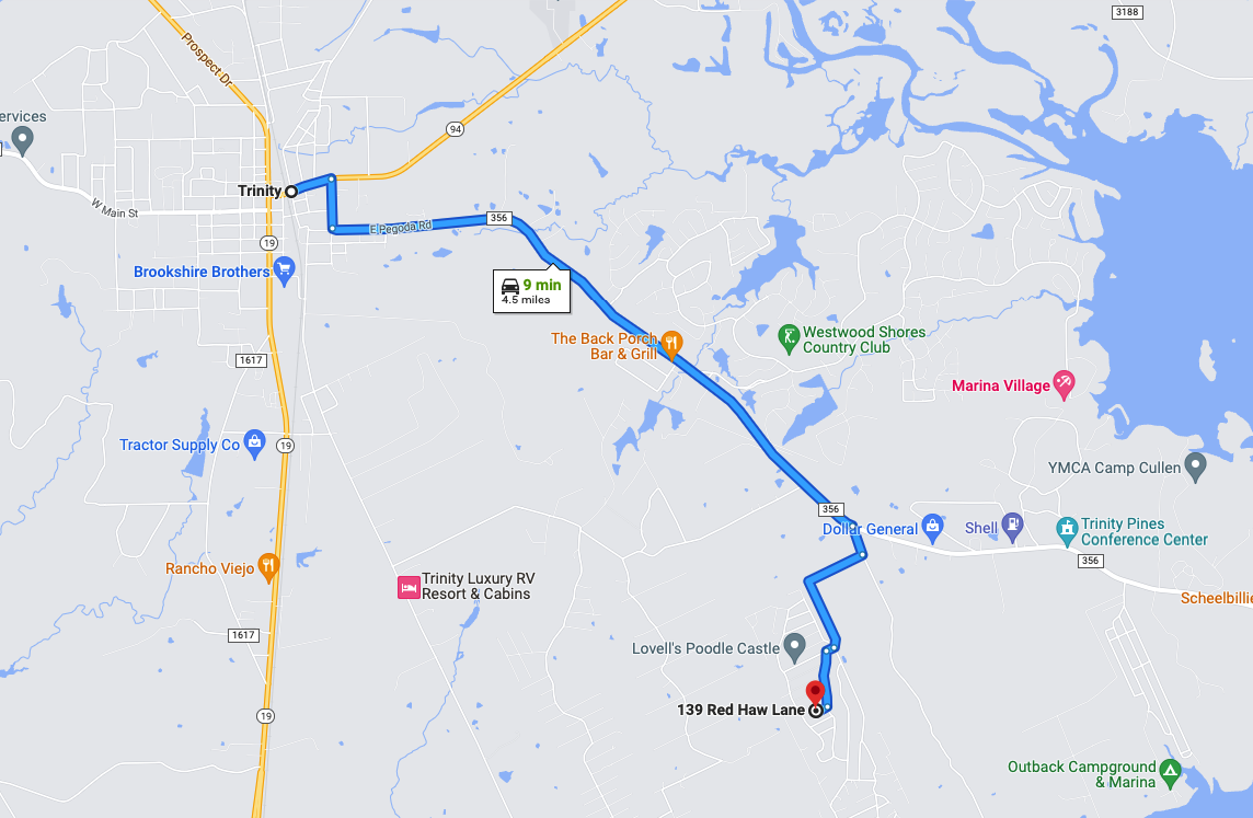Closest Small Town: Trinity, Texas 75862 (9 min (4.5 miles)