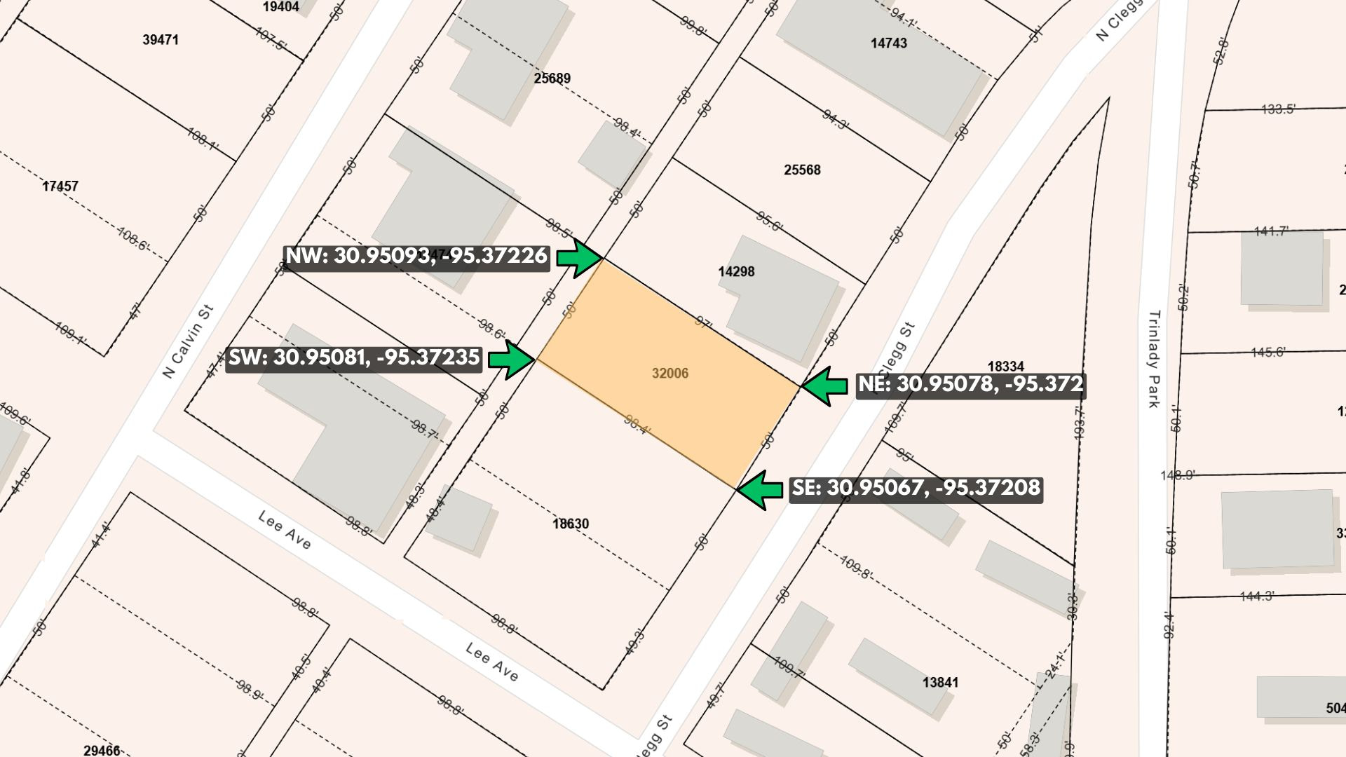 To visit this 0.11 Acre City Lot in Trinity TX for sale, search Lot 49, North Clegg Street, Trinity, Texas, 75862 within Trinity County on your phone. When you are near the land, search 30.95078, -95.372 on Google Map to locate one of the corners. Contact our office for surveys (if available), county plat maps, Google Map boundaries and corners, and MapRight.