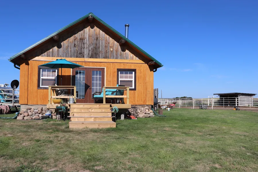 Charming rustic log cabin sits on 3.3 acres, on an end road. The property is located three miles east of Winner, SD, off South Dakota Highway 44. Would be a perfect place for animal lovers, gardening enthusiast, horse property, or anyone who would just like to live out in the country or simplify their lives. The cabin consists of 960 sq ft on the main level, an open kitchen, dining room, and living room, 1 bedroom, a 3/4 bath and laundry room. The loft overlooks the dining room and living room, and is 480 sq ft. There has been new siding in 2020, new roof in 2015, new windows in the last 2 years, kitchen cabinets and appliances in 2016.This log home was built on railroad ties that are 5 in the ground, and are 18 above the ground.The home has a deck on the east side, perfect for those nice fall evenings. The home was built in 2001.