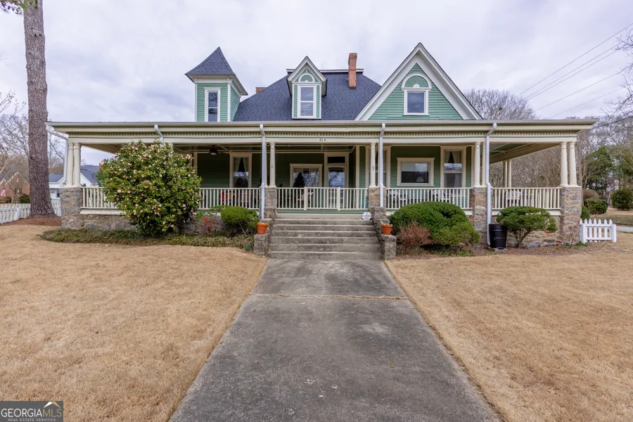 Charming Historic Cottage located in Downtown Hogansville (Circa 1905) - This Victorian Era home boasts an architectural style with attention to detail in every corner - "Timeless Elegance" comes to mind as you approach the Large front porch (over 14ft deep) with detailed wood paneled ceilings - This is a beautiful single story home perfect for empty nesters or anyone that appreciates a Spacious Historic Home - Enter the Parlor to see the 12 1/2 foot ceilings and original hardwood floors that span through each room - 6 decorative fireplaces throughout the home - Large living space leads to the Dining room with Wainscoting and seating for 12 or more - Updated kitchen with wooden counter tops, newly resurfaced solid hardwood cabinets - 2 large bedrooms & a Large Den (could be 3rd bedroom) with 2 fully renovated bathrooms - One is tiled with oversized claw foot tub - The HVAC is 3 years old with new duct work & a Halo Filtration system- Rinnai tankless hot water heater - Roof is 5 years old - Exterior paint is 3 years old - Huge whole house attic, great for additional storage - This home sits above Main St with driveway access on Granite St - Detached 2 car garage with workshop - Fenced in backyard, perfect for pets - Mature fig trees and blueberries - Perfect location to walk downtown for restaurants and enjoy community activities all year round!