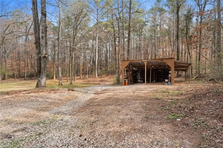 Enter to views of a beautiful stone fireplace, modern light fixtures, vaulted beamed ceiling in family room. Natural lighting thru multiple windows and glass door leading out to large wooden deck. Some original features maintained. Beautiful white kitchen includes open window to dining room. Almost 2 acre lot, plenty of space for pets, entertaining, four wheeling, work equipment and more. Large workshop for equipment storage or working on cars. Came take a look !