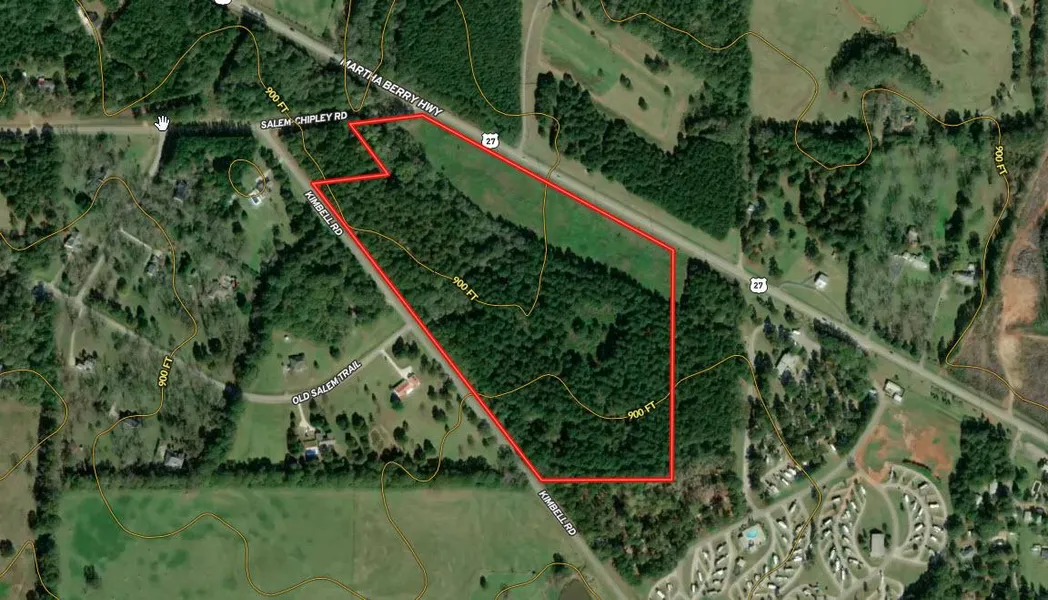 Incredible land opportunity in East Troup County, just outside the Pine Mtn. City Limits. This tract has frontage on Hwy 27, Salem Chipley Rd, and Kimbell Road, creating the perfect location for both Commercial and Residential development. The Topo is very level, allowing for 100 percent tract usability. The Hwy 27 frontage is open and has unmatched visibility, with the balance of the land in a light mature tree cover, ideal for residential development.