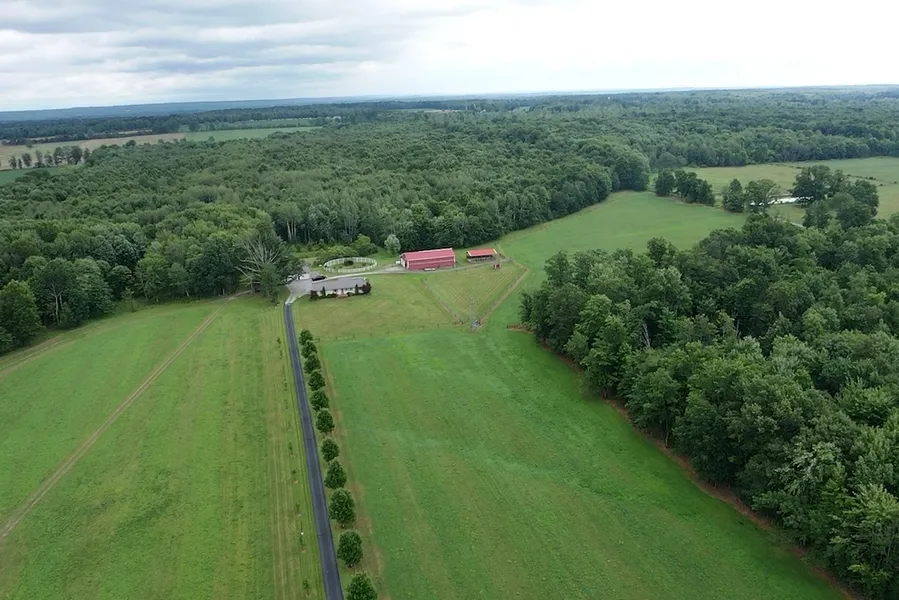 Discover the perfect blend of rural charm and modern amenities with this stunning 90-acre farm, offering a unique opportunity for peaceful country living. Nestled in a picturesque landscape, this property features a spacious 3-bedroom, 2-bathroom ranch home, a detached 4-car garage, a large barn, and a separate apartment. This cozy ranch home boasts three spacious bedrooms, a large family room, an office, and tons of storage in the custom wood kitchen cabinets. The basement is finished with a beautiful entertaining / theater room, half bath, laundry room, and an additional room currently used as a weight room. Multiple outbuildings provide endless opportunities for storing equipment and toys to raise animals. Two nice pastures include a 5-strand high tensile fence with a triangle paddock, including a no-climb fence perfect for moving animals between pastures. The separate apartment provides a private living space for guests and extended family. It features its own kitchen, bathroom, and living area. The apartment ensures comfort and independence. The property includes open fields/ pastures, wooded areas, and a pond, perfect for farming, horseback riding, or outdoor recreation. Excellent deer and turkey signs are seen throughout the property, with an established trail system, making getting around a breeze. The seller's mineral rights will transfer to the new owner.