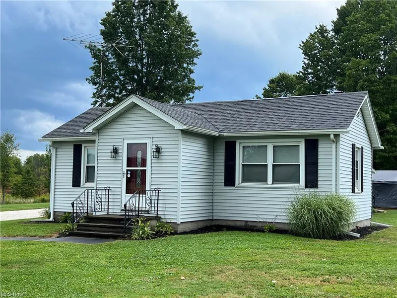 Adorable 2 bedroom Ranch home with close to 2 acres of land in Kinsman, Ohio. This house is perfect for a couple just starting their journey or even someone who wants to downsize and enjoy the peaceful country life. Landscaping and mulch surround the house. Large gravel driveway leading to the detached garage with concrete floor and electric. Sidewalk to the front porch. When you enter the home, you will find a wood laminate entryway floor leading into the newly carpeted living room. The family room in between the living room and dining room that can be whatever you can imagine it to be. EX: Office, playroom, craft room. Head from the dining room down the steps into the kitchen where you will find ample cabinet space, pantry and recessed lighting. Panel door in kitchen floor leads to the partial basement but there is also an entrance outside. The laundry room/mudroom is situated directly off the kitchen, complete with utility sink and wall cabinets for storage. Door in the Laundry room will lead you to a patio where you can escape and enjoy nature. The house has been recently updated with new carpet, Septic system and new garage was added in 2021. Newer water filtration system and reverse osmosis drinking water. Included shed and small garden area make a perfect addition to this serene retreat from the hustle and bustle. You don't want to miss this opportunity! It won't be on the market long!