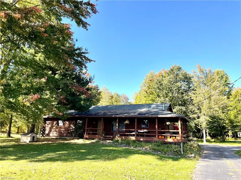 Have you ever wanted your own log cabin style home on 5 acres? You’ve found it! This unique, expansive ranch has over 5 wooded acres along with a pond that is approximately 7-10 ft deep. 4 generous sized, first floor bedrooms with log walls and spacious closets. The living room has French doors leading to a multi tiered deck and covered pavilion area that could easily be screened in for outdoor entertaining. Downstairs has an additional two more bedrooms for a possible 6 in total. The septic system was replaced in 2019 and approved for a 6 bedroom home. Also located in the walk out basement- it is THE spot to hang out! A large bar area, family room and plenty of space for a pool table- with a paved driveway and detached 2 car garage with additional carport- this home has it all! Centrally located!