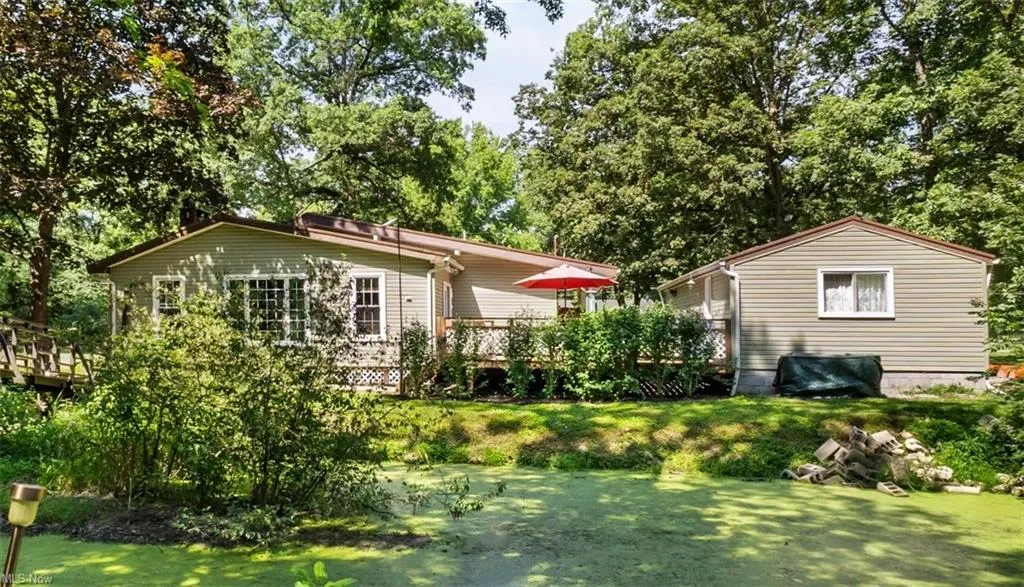 Come take a look at this gorgeous, semi-remodeled home in 2025, with a unique architect-designed lighted bridge in the backyard nestled on a wooded lot with a creek. Located in the small community of Plalan Lakes in W. Farmington, this rustic, cabin-like property features 3 bedrooms and 1 bath with a high-end walk in tub, central air, an open concept kitchen-living room design with vaulted ceiling, wood burning fireplace including a gorgeous insert with blower, hand-made crafted solid oak cabinet for storage in the master bedroom, tankless water heater, hidden laundry room with plenty of storage, a whole-house water purification system plus Reverse Osmosis water for drinking, and a mudroom with French doors leading to a large deck for outdoor entertaining. It also includes a single car garage, large pole barn with wood stove and wired electric. Very private accessible entryway and location. All appliances stay including stand alone 8000 watt generator. Do not miss this one-of-a-kind property! A community effort $120 per year per lot for road maint, Lake privileges for a small fee of $100 per year Only qualified buyers please - with pre-approval status. Thank YOU EXCLUDED from sale - deep freezer in the "she shed", two (2) paw paw trees on Island. Seller requests 24 hr notice (if possible)