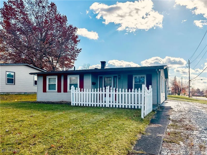 Discover easy one-level living in this cheerful ranch-style home set on a convenient corner lot. The covered front porch leads you into a spacious living room, a dining area with a fun bar ledge for extra seating, and a well-equipped kitchen with appliances and ample cabinet space. An inviting den/office could serve as a third bedroom, offering flexible space to fit your needs. Down the hall, you'll find a dedicated laundry area with a full-size washer and dryer, two bedrooms, and a nicely updated bath featuring a walk-in tile shower. You'll appreciate the abundant closet space throughout the house. A covered breezeway - complete with a storage shed - leads to the oversized one-car garage with work and storage space. A small fenced backyard provides just the right amount of outdoor area without the upkeep. Additional highlights include an extra driveway for parking, a BRAND NEW roof on the house and garage, and a low-maintenance design throughout. Conveniently located near shopping, dining, hospitals, Youngstown State University, and major interstates, this home offers comfort, practicality and accessibility in one great package!