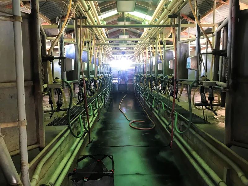 To the East are open lot with shades. The pen farthest South contains 125 holes for milk cows. The other three pens combined contain 235 holes.