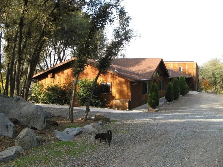 This distinctive home is located on a picturesque 3.5-acre lot in the Sierra's.Main house is a 3 bedrooms 2 bath ranch style home. Upstairs guest house,carport,pole barn 18 x 30, metal garage 24x30, tuff shed, and a workshop.The LR has windows overlooking the private wooded River front lot and your own fishing pond and waterfall. You'll feel like you are in the High Country with views of Dennison Mt. The open floor plan is perfect for entertaining.With its large deck,spa and sauna. Once you see the natural grounds with pathways throughout you will never want to leave.