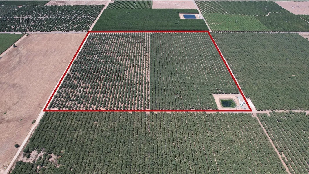 Available for sale is a nicely farmed 40 acre pistachio ranch planted to mature Kerman varieties. The ranch is planted to Kerman pistachios on Pioneer Gold rootstock. The east half was planted in 1988 and the west half was planted in 2014, both on a 22x15 spacing. The property is irrigated by two shared pumps, one well and reservoir that is located on the southeast corner of the ranch. The second well and filter site is fenced and gated. The pump is a 100HP turbine pump. The trees are irrigated by a single fan-jet line and double drip line system. The property is located in the Eastern Tule GSA.
