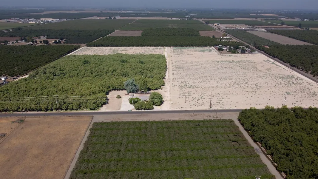 This property consisting of 38 acres is located about two miles southeast of the Visalia city limits. The parcel has a 3 bedroom/3 bathroom home of approximately 2,2000 sq. ft. There are 11 acres of mature Tulare walnuts on Black root stock. The trees are irrigated from a newer 424 ft Ag well. There are two domestic wells that provide water to the house and yard.