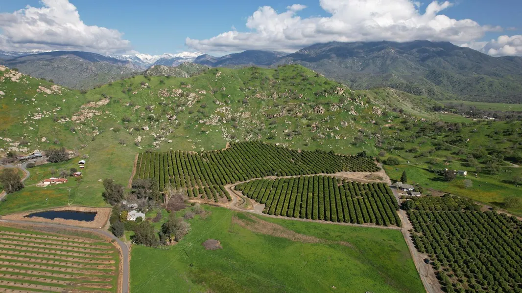 For sale in the foothills of Tulare County, California, is a productive citrus grove with excellent surface water rights. The property would also make a scenic place to build a custom home nestled against the green oak studded foothills.
