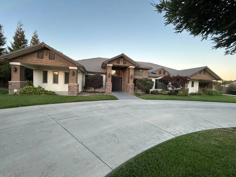 A MUST SEE! Don't miss the opportunity to make this Rare Gem yours! Nestled in the serene Hidden Acres community of Visalia, this stunning home is custom built on a 1-acre lot of a cul-de-sac. It boasts everything from curb appeal, charm, and warmth, to space, privacy, and luxury. As you enter the semi-circular driveway, the exceptional landscaping quickly catches the eye and the beautifully stamped concrete leads to an inviting grand entryway. Inside, you will admire the high coffered ceilings with crown molding, elegant travertine natural stone flooring, and gorgeous granite countertops with unique edging throughout the entire home. The open floor plan with adjoining kitchen, wet bar, dining, and family room makes for ideal gatherings and comfortable everyday living. The master bedroom features a sitting area and a luxurious ensuite with the walk-in closet of your dreams! Step outside ...