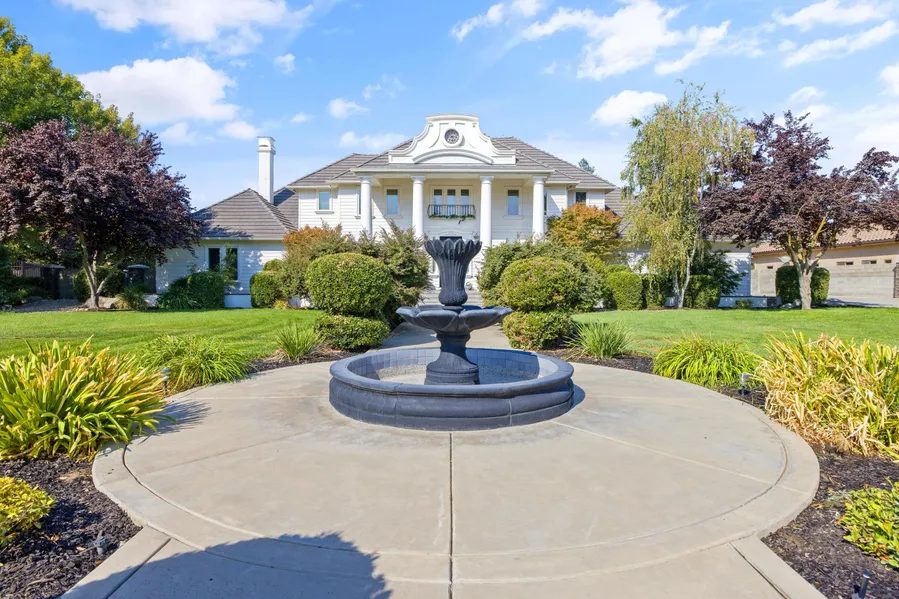 Come and explore this stunning, private, custom home situated on 1.09 acres in a serene, gated residential area in northwest Visalia. Perfect for indoor and outdoor living and entertaining, this home features an open concept living area with abundant natural light. It boasts high-end Viking appliances, a Sub-Zero refrigerator and separate Sub-Zero freezer, and two Fisher Paykel dishwasher drawers. Additional highlights include a chandelier lift, a Beam central vacuum system with toe kicks under cabinets, and a saltwater swimming pool with a solar heating system. The backyard includes an additional building that can serve as an office or gym, complete with air conditioning and a handwashing sink. The four-car garage offers attic storage and a custom workbench with plumbing for an air compressor. The downstairs master bedroom includes an en-suite bathroom with a steam shower, a walk-in closet with built-in drawers and an island. The downstairs laundry room features a laundry chute from the upstairs, making clothes handling easy, as well as a built-in ironing board. The game/bonus room can be used as a fifth bedroom. Additional features include two fireplaces, two staircases, touchless faucets, fruit trees, a garden area with a children's swing set and slide, and much more.