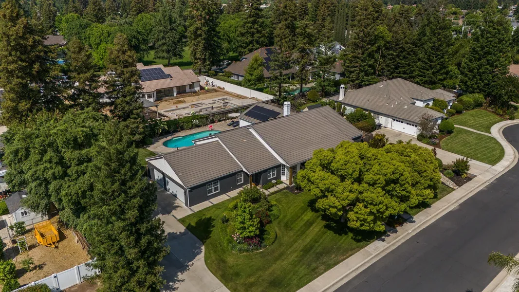 Absolutely beautiful and tastefully renovated custom-built home nestled in a quiet, well-established Northwest Visalia neighborhood. This spacious family retreat offers 4,293 sq. ft. of living space, featuring 5 bedrooms and 4 full bathrooms. The heart of the home is the chef's kitchen, fully updated with Monogram appliances-including double ovens, a warming drawer, built-in refrigerator, wine fridge, icemaker, and two dishwashers. The expansive granite countertops are finished with a unique leather texture and natural edging, make this kitchen both stylish and functional. The oversized laundry room offers two washer and dryer hookups, a sink, and plenty of storage-perfect for keeping up with busy family life. The large, open-concept family room is ideal for entertaining, while the luxurious master suite serves as a private retreat. It features a beautiful oversized walk-in closet and a stunning spa-like bathroom with a soaking tub and a one-of-a-kind oversized shower. Sitting on a 1/2 acre lot, this home boasts mature landscaping, a spacious garden area, and a sparkling pool-perfect for outdoor living and entertaining. The property also includes owned solar with 41 panels, providing energy efficiency and cost savings. This remarkable home truly has it all. Don't miss your chance to own a piece of paradise-schedule your private showing today!