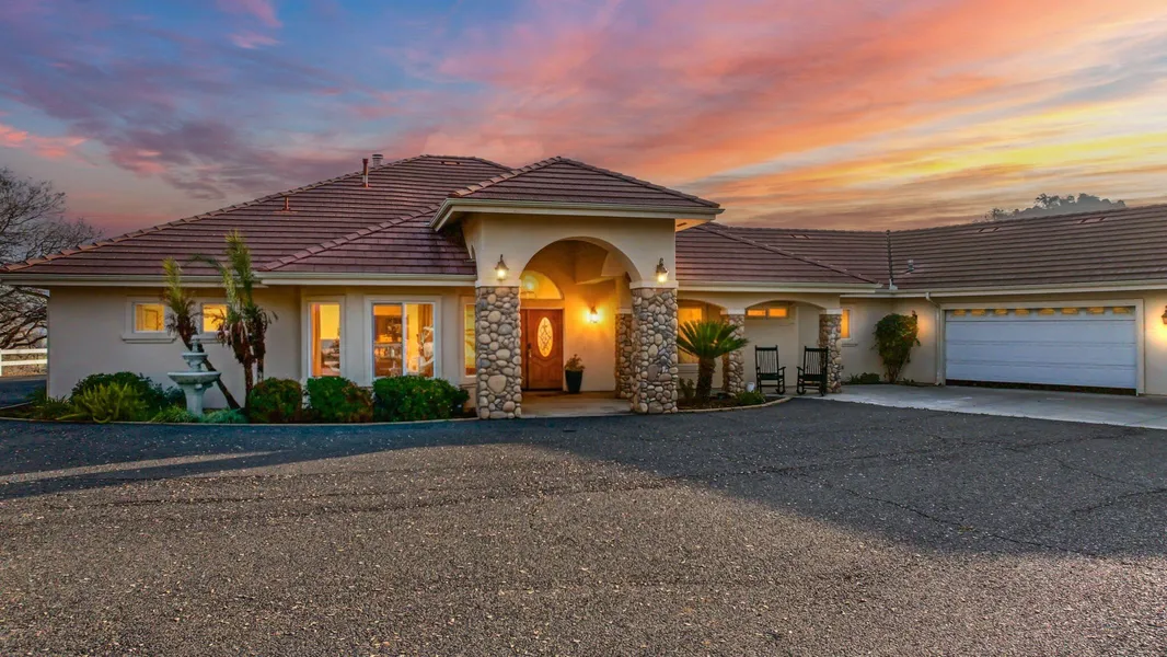 Experience the breathtaking, panoramic views at this stunning Springville estate! As you enter through the gated entry, the white fence-lined driveway guides you up to the hilltop, where your private retreat awaits. Take a moment to relax by the infinity pool, complete with a natural rock waterfall and framed by the awe-inspiring Sierra Nevada Mountains. This is the ultimate spot for hosting friends and family, with an outdoor bar and kitchen that make entertaining a breeze. The main house spans 2,813 sq. ft. and features three bedrooms, 3.5 baths, and a dedicated office space or 4th bedroom. Step inside to discover the open-concept great room bathed in natural light, thanks to thevwall of windows that seamlessly connect the indoor space to the lush backyard. A cozy fireplace adds warmth and ambiance to this inviting space. The kitchen has an enormous island, stainless-top of the line appliances, tons of custom cabinetry and a walk-in pantry. The oversized primary bedroom, with direct access to the back patio, offers a room-sized closet, an additional walk-in closet, and a luxurious soaker tub with jets for ultimate relaxation. The two ensuite bedrooms each come with their own private bathrooms. This property also includes a 600+ sq. ft. guest house/casita, featuring a kitchen, sitting area, bedroom, and a full bath with a walk-in shower-Ideal for Airbnb potential, extended family, or out-of-town visitors. For equestrian enthusiasts or those with 4-H and FFA projects, the property is fully equipped with a 3-stall barn, covered paddocks, a wash rack, and a single-car garage/shop/tackroom. A round pen and fenced pastures complete this dream setup. 4 friendly sheep/ 'the groundskeepers' can be included in the sale. And there is OWNED SOLAR that will transfer with the property!!! And for the kids? They'll love the hidden treehouse that adds a touch of whimsy to this already exceptional property. Let's go!